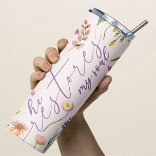 He Restores My Soul Psalm 23 Floral Women's T-Shirt