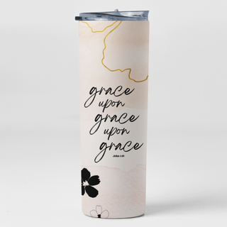 Grace Upon Grace Bible Verse Stainless Steel Double-Wall Vacuum Sealed Insulated 20oz. Travel Tumbler With Straw For Hot or Cold Beverages