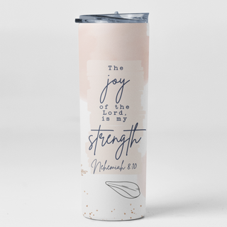 The Joy Of The Lord Is My Strength Navy Floral Bible Verse Stainless Steel Travel Tumbler