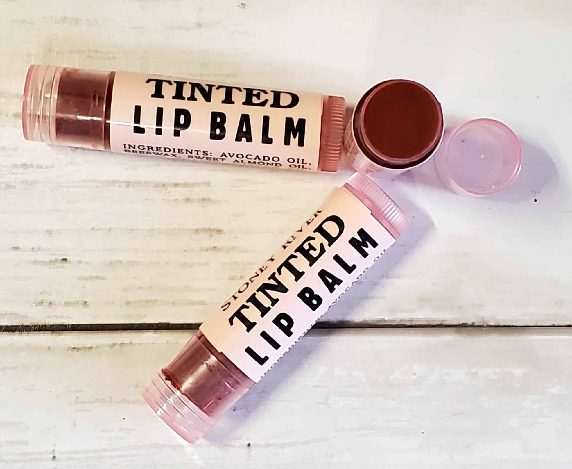 Our Tinted Lip Balm is made only with natural ingredients, just like our regular lip balms. This super emollient balm goes on smooth and leaves your lips with a luxurious, glowing sensation. Made with beeswax, sweet almond oil, castor oil, cocoa butter, vit. E, red oxide powder and beetroot powder. It imparts a natural pink tint to the lips; since we don't add any flavors to this balm, it may also be used as a natural rouge on the cheeks.
