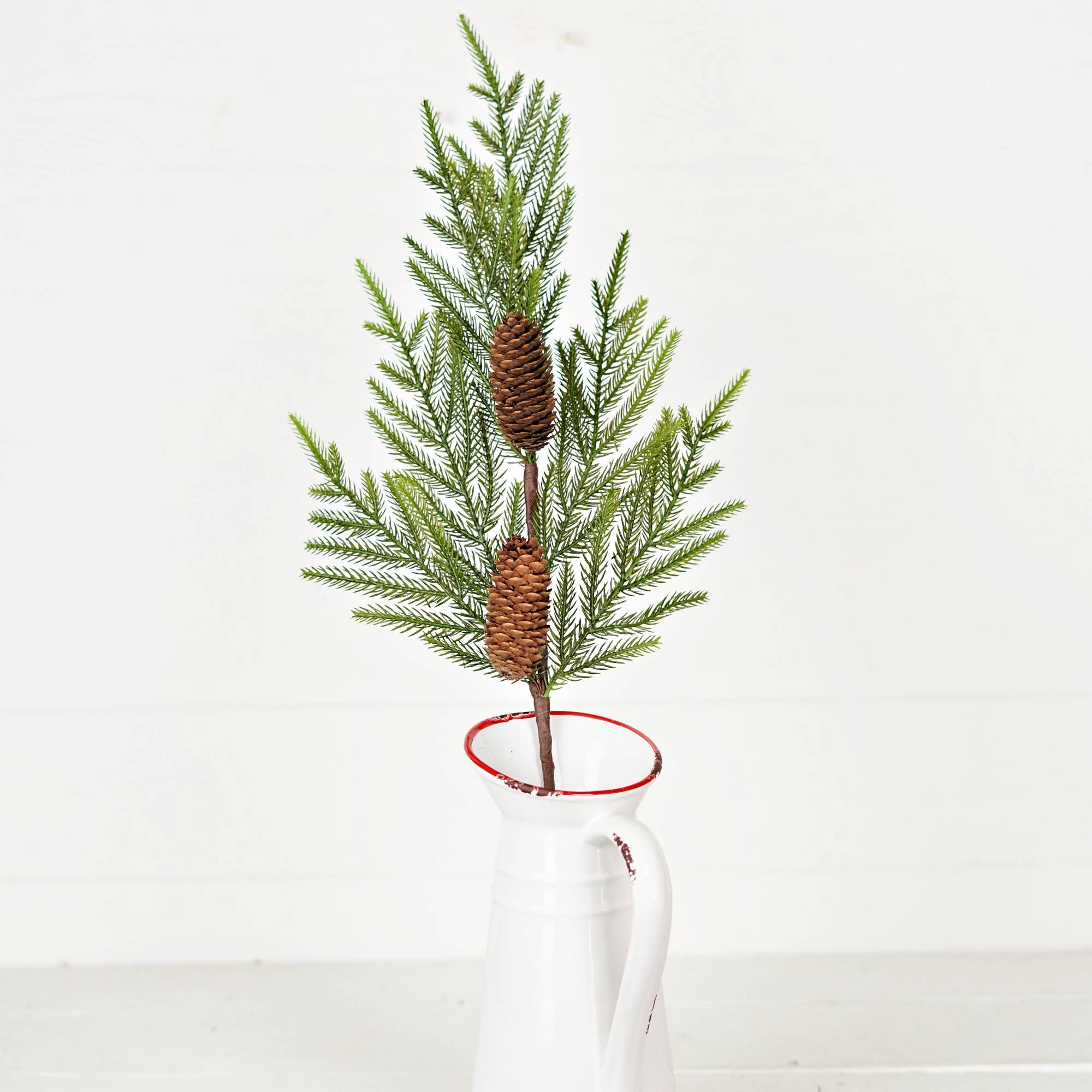 Christmas holiday evergreen norfolk pine w long pinecone branch spray