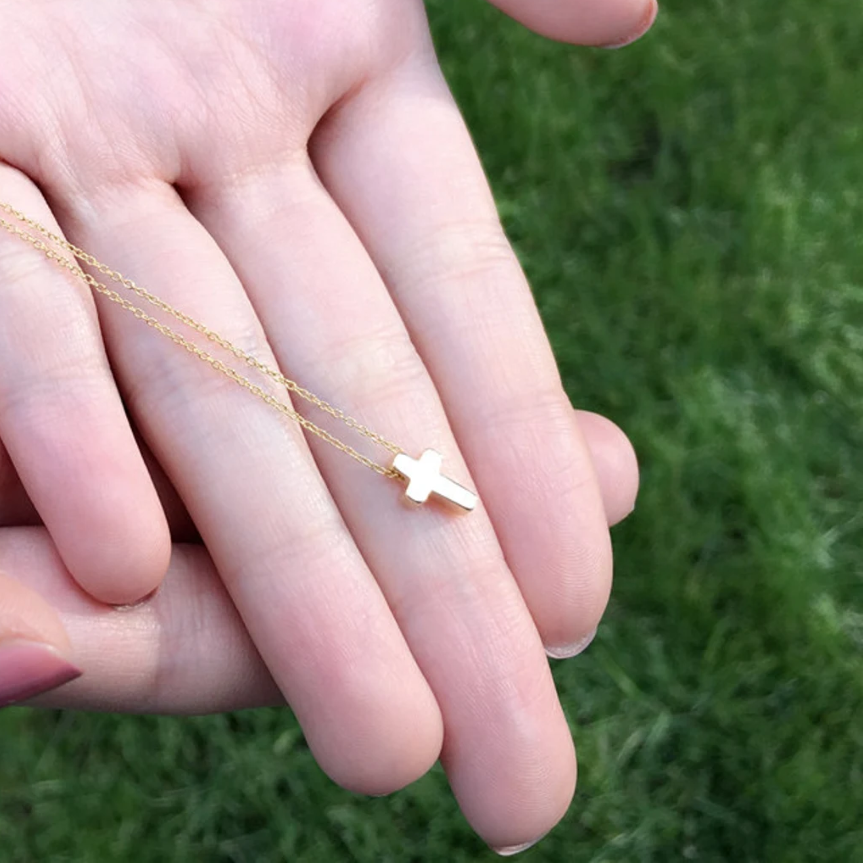 A perfect gift for a baptism, first communion, or birthdays. The simple and classic design makes this dainty cross perfect for every day. Stainless steel cross on a 14k Gold Fill chain