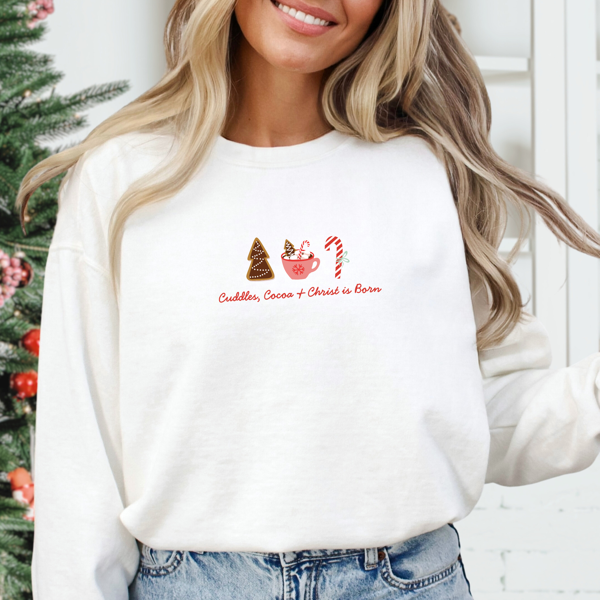 Cuddle Cocoa Christ is Born Cozy Crewneck Sweatshirt