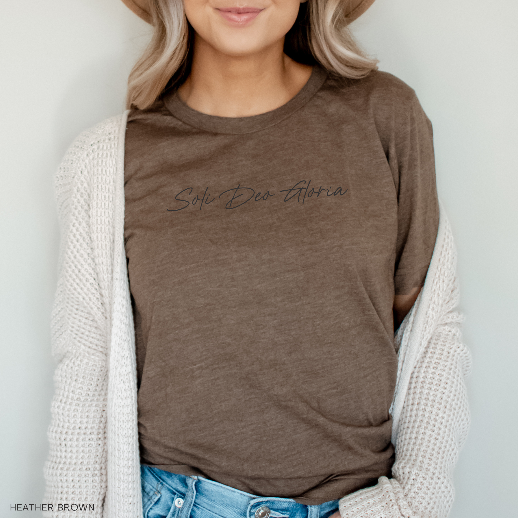 • This simple tee is an awesome way to show your love for the Lord! Fits like a well-loved favorite, featuring irresistibly soft cotton/polyester and crew neck.