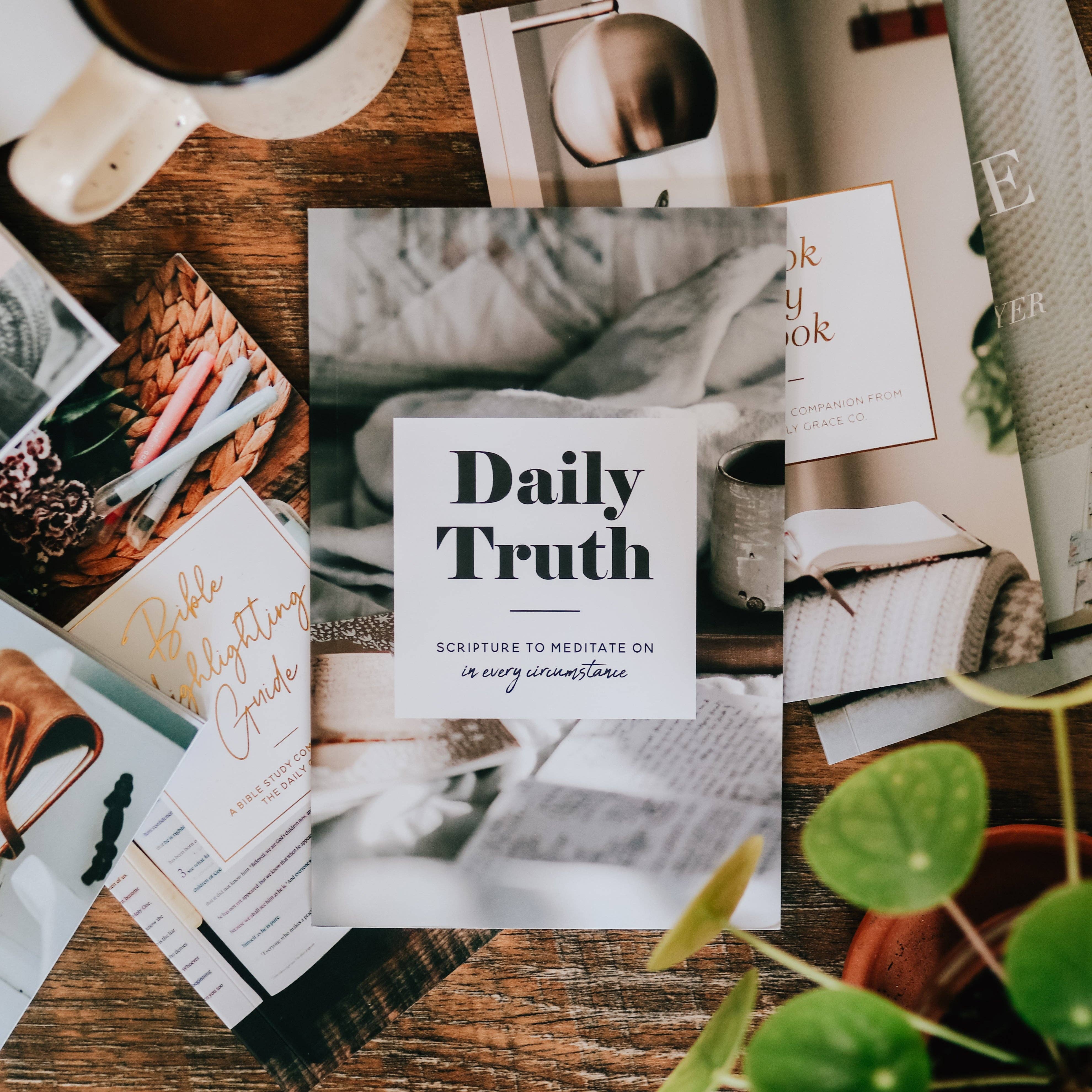 This book is designed to be as a reference for every circumstance of life. It lists out 25 various topics like worry, waiting, loneliness, and anger; and lists Scripture passages and encouragement to reference during the different seasons of life. It is the perfect companion to have as a reference to encourage your own heart or find Scripture to encourage a friend with. This is an updated and expanded edition of our best selling Daily Truth book. Discover The Daily Grace Co.’s Christian resources! From Bible study tools and beautiful Bible tabs, to inspiring gifts for Easter and Valentine’s Day, our products are designed to help you grow deeper in God’s Word.
