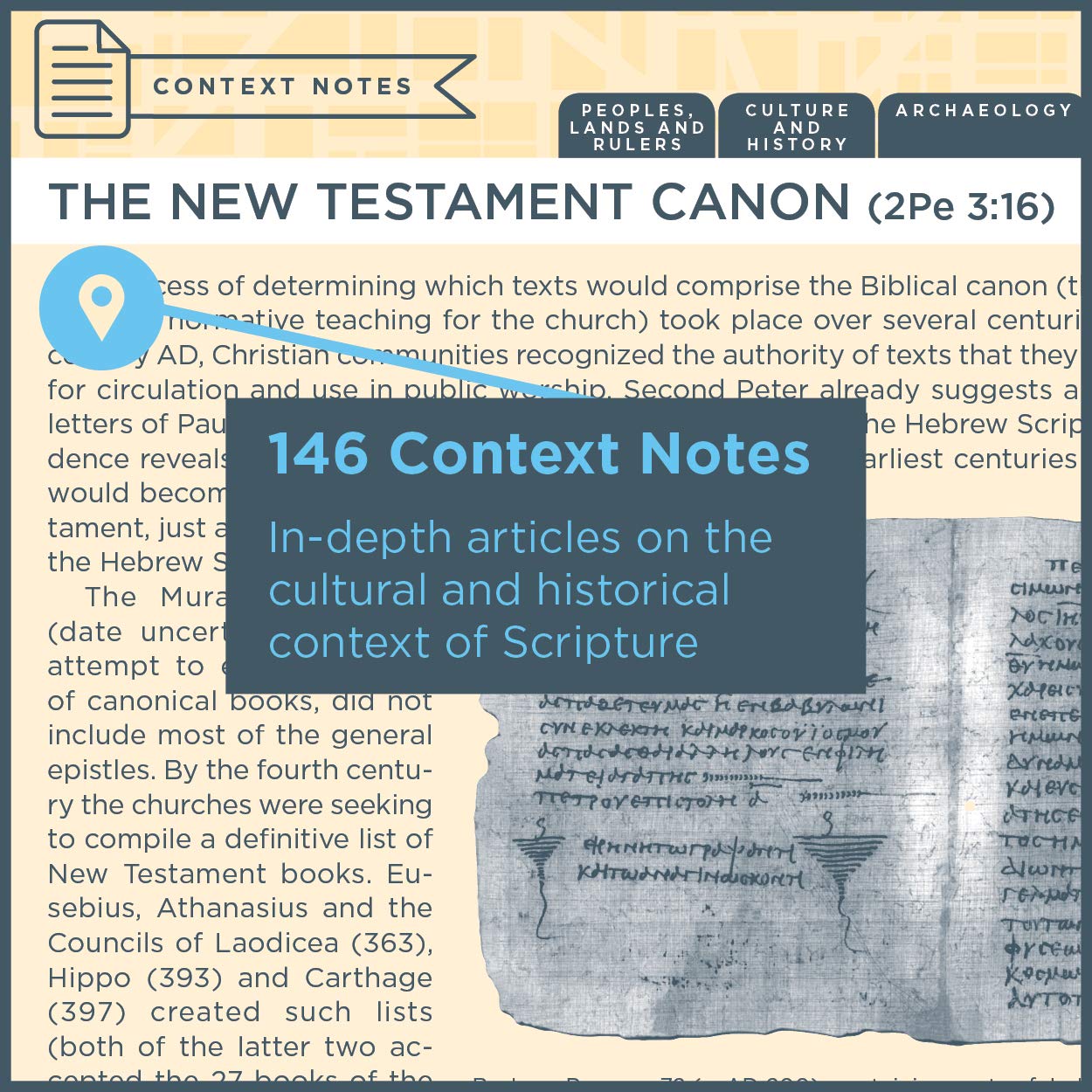 - 146 Context Notes: In-depth articles on the cultural and historical context of Scripture