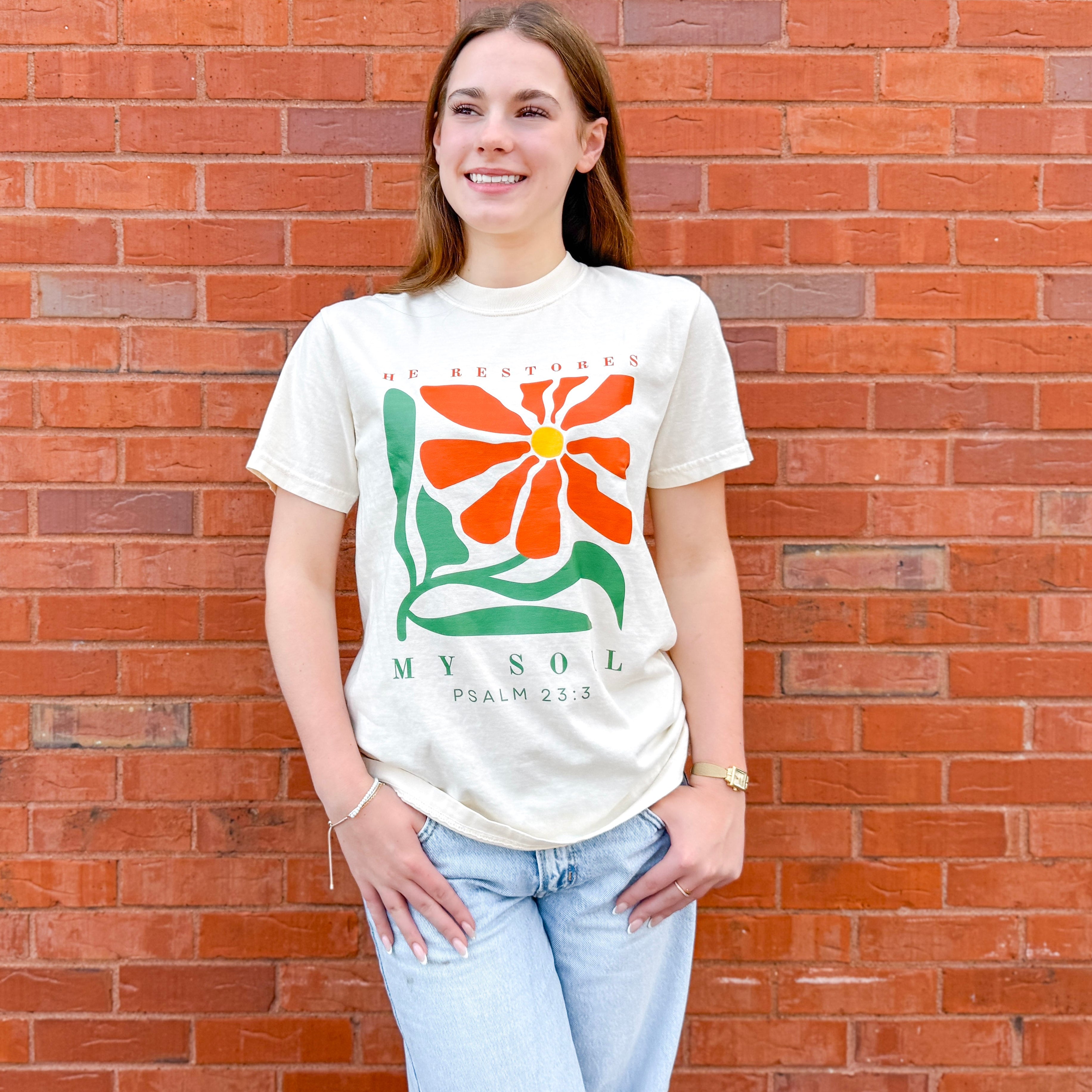 He Restores My Soul Psalm 23 Floral Women's T-Shirt