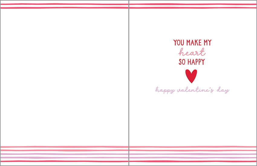 Greeting card with envelope. You make my heart so happy Happy Valentine's Day Embellished with glitter Folded size: 4.25" x 5.5" (A2)